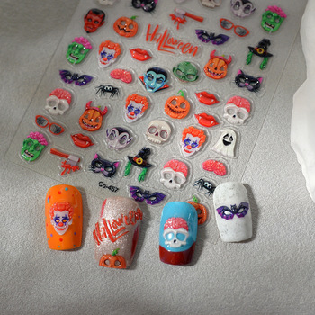 Calcomanías para uñas de Halloween, pegatinas divertidas para uñas fantasma con cabeza de calabaza, superventas transfronterizas